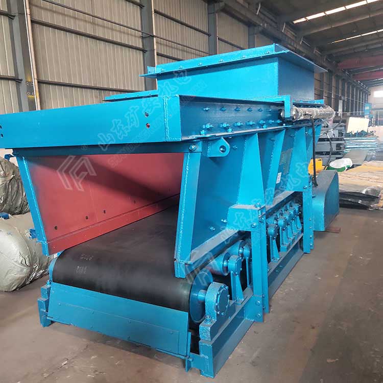 皮带给料机是针对大型高产高效矿井生产系统流量大、现行给料机已不能满足煤矿生产要求而研制的新型给煤设备。皮带式给料机是在K型往复式给料机的基础上,将往复式运动机构改为输送带式机构,从而将给料运动由滑动摩擦变为滚动摩擦。